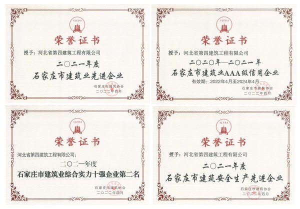 公司喜获“石家庄市建筑业先进企业”等四项荣誉